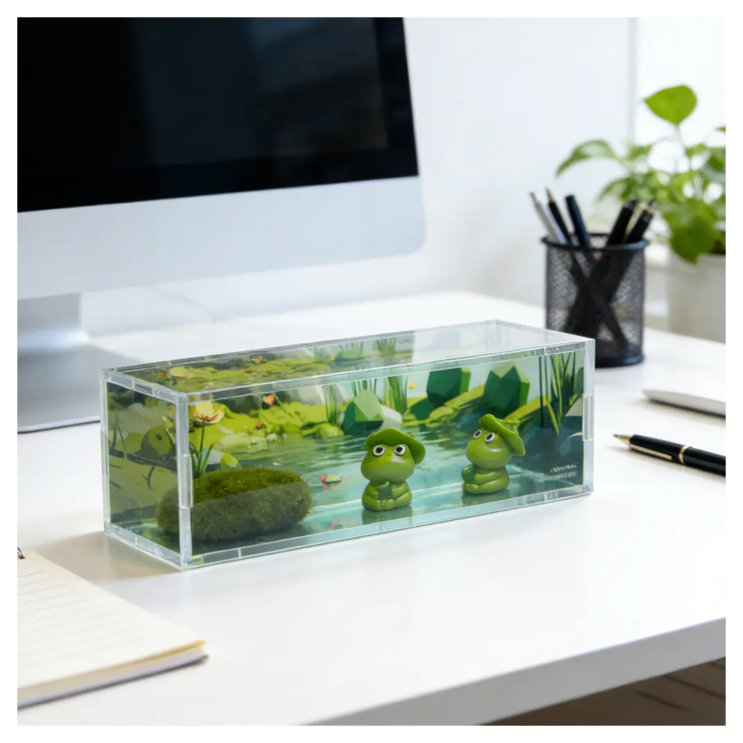 Themed Figure Mini Theater: Pond Frog Edition – Clear Office & Home Decor Display Box