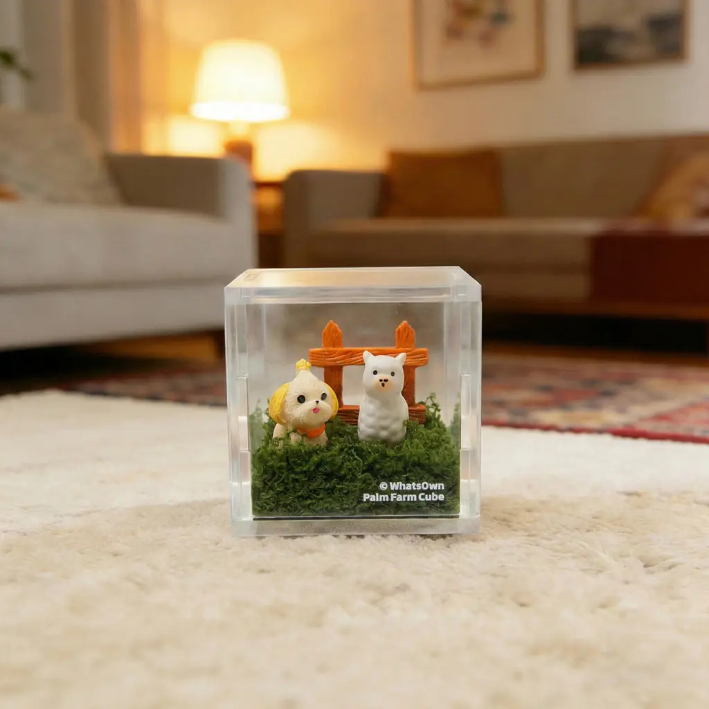 Sheepdog & Lamb Cube – This piece is a cube of 6.6 cm / 2.60 inches per side. It is part of our highly popular Palm Farm collection, featuring 11 unique themed designs in total! Curious to explore all styles? Simply search the keyword “Palm Farm” in the store’s search bar to browse the full range of all 11 themes. If you just want this one, just click “Add to Cart” and it’s yours…