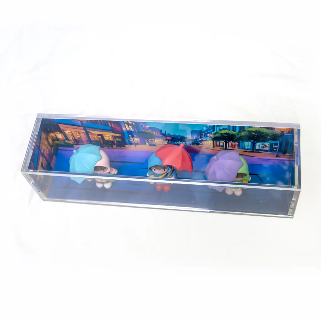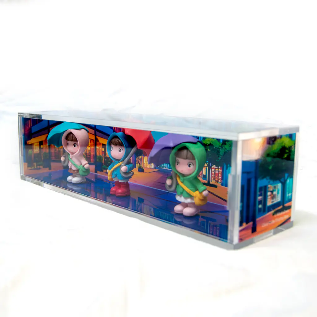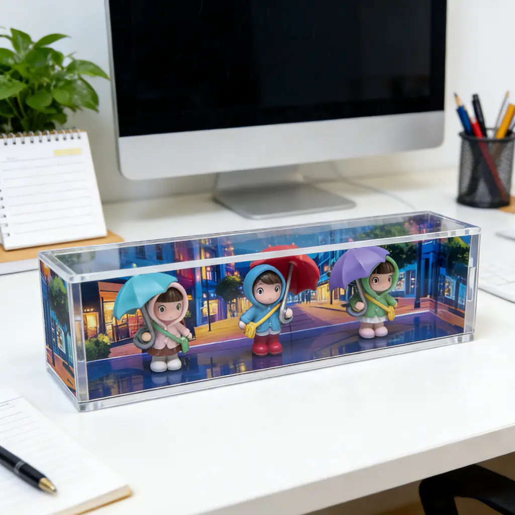 Themed Figure Mini Theater: Rainy Kids Edition – Clear Office & Home Decor Display Box