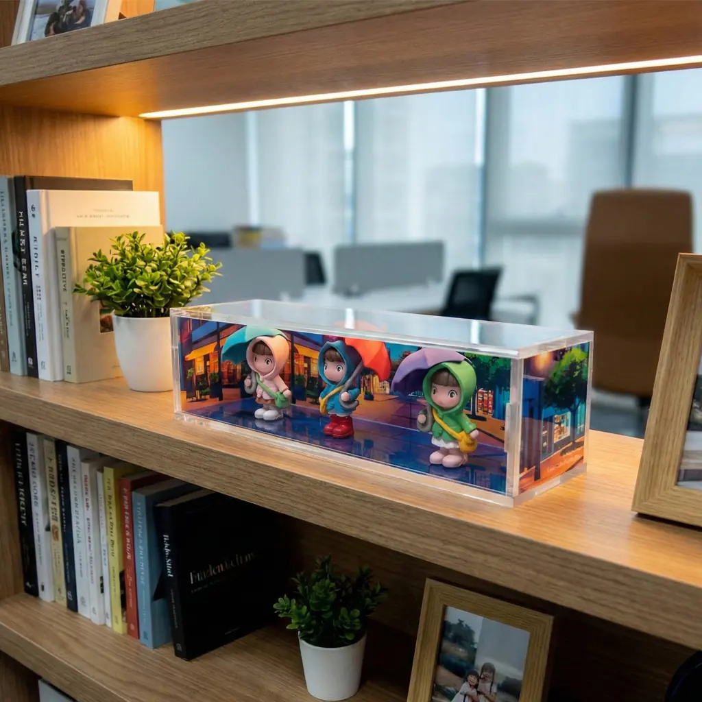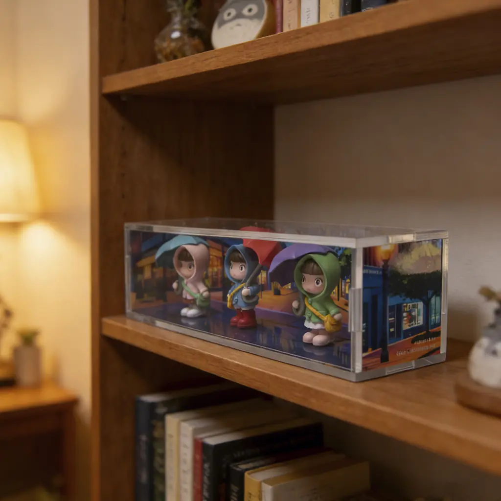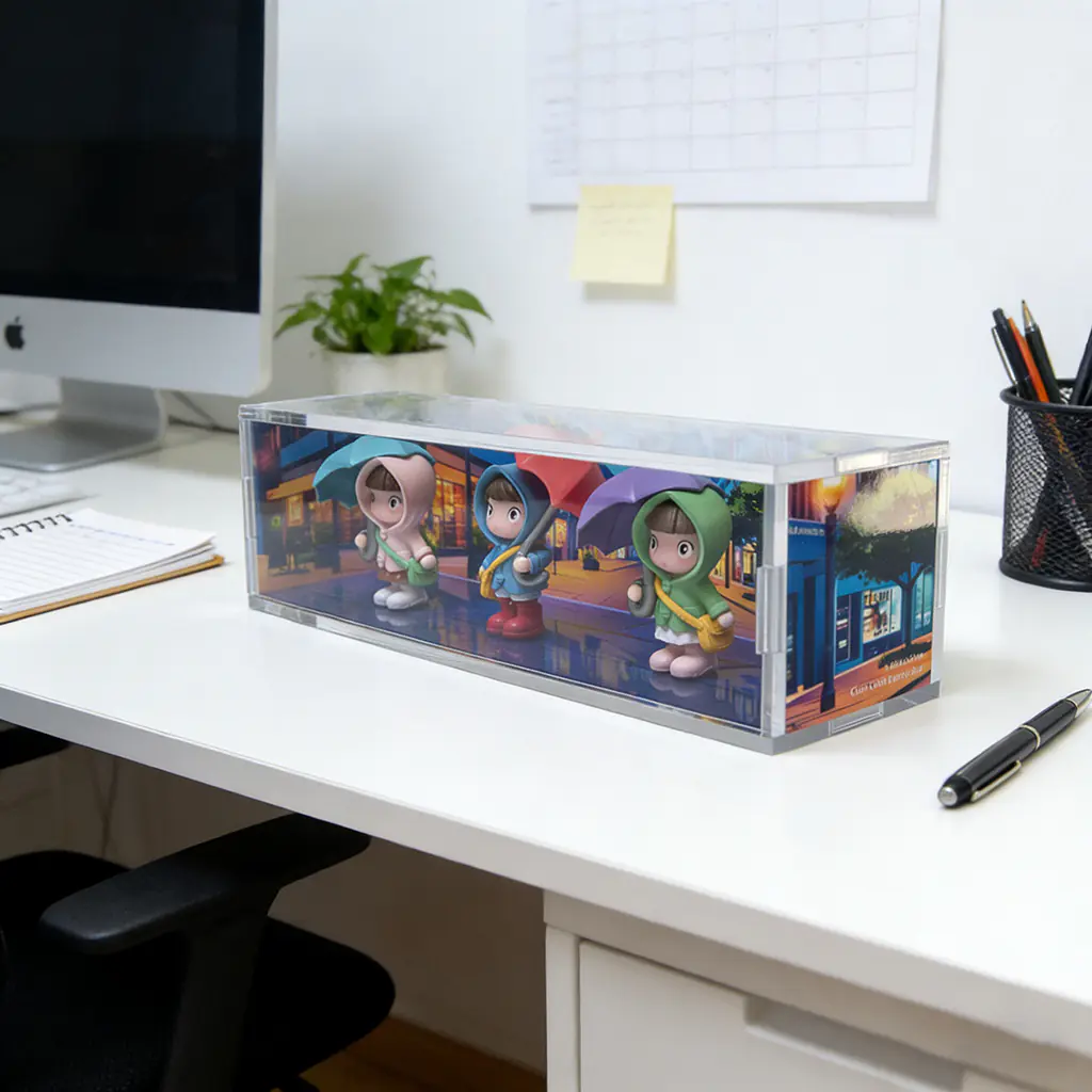 Themed Figure Mini Theater: Rainy Kids Edition – Clear Office & Home Decor Display Box